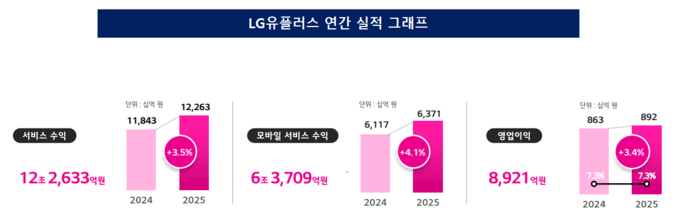 LG유플러스는 5일 실적 발표를 통해 2025년 연간 연결 기준 영업수익 15조4517억원, 영업이익 8921억원을 기록했다고 밝혔다. 이는 전년 대비 각각 5.7%, 3.4% 증가한 수치다. 영업이익의 경우 지난 3분기 이뤄진 구조조정에 따라 발생한 일회성 인건비를 제외하며 전년 대비 약 20% 증가한 것으로 보인다.
