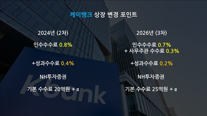 업계 관계자는 “세 번째 상장 도전인 데다 최근 시장에서 주목받는 업종과는 결이 달라 흥행이 담보되지 않는다는 판단이 반영돼 기본 수수료가 높아졌을 가능성이 있다”며 “케이뱅크로서는 사실상 마지막 기회라는 절박함이 협상 과정에 투영됐을 것”이라고 말했다.