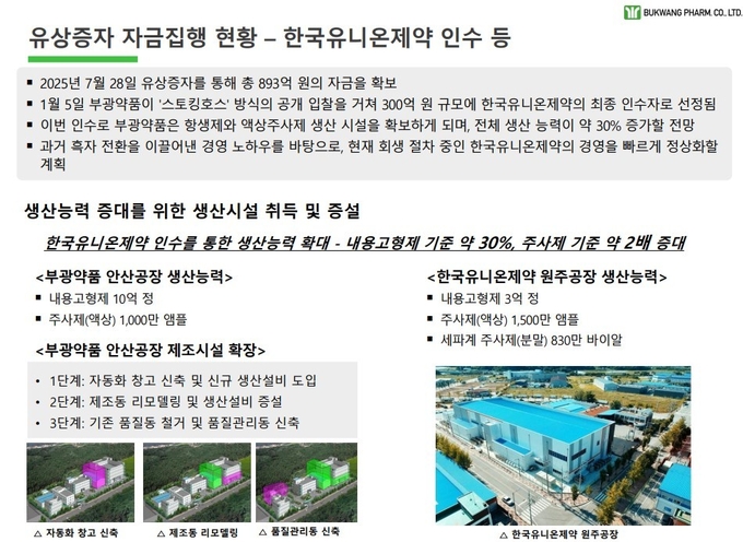 생산 효율화를 통한 수익성 강화 전략도 함께 추진한다. 부광약품은 현재 외부 업체에 맡기고 있는 위탁 제조 물량을 유니온제약의 원주 공장으로 옮기는 방안을 검토하고 있다. 외부 지출 비용을 자회사로 돌려 공장 가동률을 높이고 생산 원가를 낮춤으로써 부광약품의 전체 실적을 올리는 구조를 만들겠다는 생각이다.