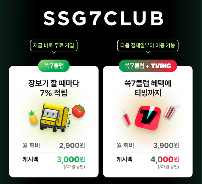 [FETV=이건우 기자] SSG닷컴은 오는 3월 5일 출시하는 쓱세븐클럽 티빙형 서비스의 월 구독료를 3,900원으로 책정했다고 11일 밝혔다.