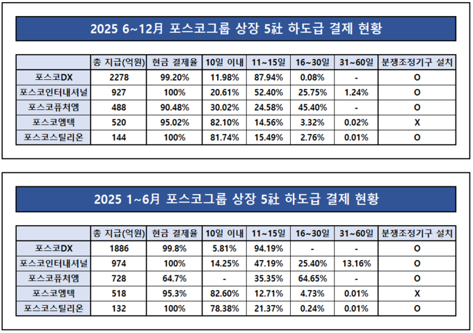 포스코그룹 관계자는 "현금 결제와 현금성 결제 모두 협력사에게 현금으로 인식되는 구조"라며 "지난해 하반기 현금 결제율이 높아지고 중장기 지급 비중이 낮아지는 등 지급 기간에서도 일부 개선이 이뤄졌다"고 전했다.