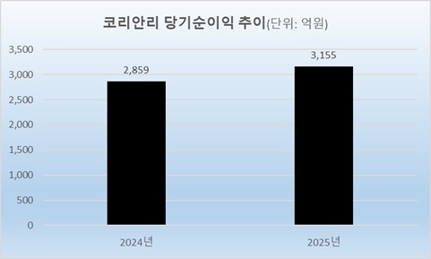 13일 코리안리가 공시한 개별 재무제표 기준 2025년 당기순이익은 3155억원으로 전년 2859억원에 비해 296억원(10.4%) 증가했다.
