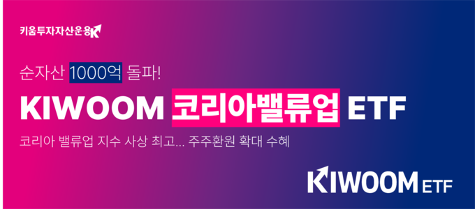 [FETV=김예진 기자] 키움투자자산운용은 ‘KIWOOM 코리아밸류업 ETF’의 순자산이 2월 12일 기준 1000억원을 돌파했다고 19일 밝혔다.