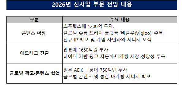광고 부문에서는 넵튠에 1650억원을 투자했다. 데이터 기반 타게팅과 자동화 광고 매매를 중심으로 성장 중인 애드테크 시장에 대응하기 위한 포석이다. 그동안 인도 시장에서의 성공이 ‘BGMI’ 흥행에 집중됐다면 이제는 확보한 대규모 이용자 데이터를 기반으로 게임 내 광고와 데이터 타깃팅 사업을 확대하겠다는 전략이다. 즉 사업과 인도 이용자 데이터를 결합해 광고 수익을 별도 사업 축으로 육성하겠다는 전략이다.