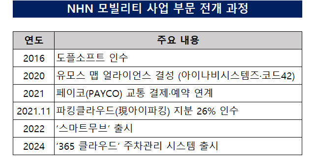 NHN이 스마트무브를 기점으로 그간 구축해온 클라우드 및 페이코 인프라를 결합해 모빌리티 부문에 본격적으로 진출하려는 것으로 보인다.