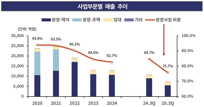 그러나 2025년 들어 채산성이 높은 택지 매출이 축소되면서 상황이 급격히 달라졌다. 연간 약 4000억원 규모의 임대사업 영업손실을 분양사업이 보완하던 구조에서 핵심 수익원이 줄어들면서 전사 수익성이 빠르게 악화된 것이다.