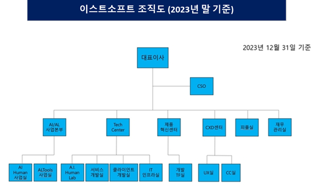 [FETV=신동현 기자] 이스트소프트는 AI 기반 서비스 기업으로의 전환을 위한 조직 개편을 꾸준히 진행해왔다. 특히 2025년 말 기준 조직 구조에서는 C레벨 직책 확대를 통한 전문성 강화와 함께 AI 기술을 실제 사업으로 연결하기 위한 조직 확장이 나타났다. 공공·교육 등 신규 시장을 겨냥한 사업 조직도 등장하며 변화 폭이 크게 확대된 모습이다.