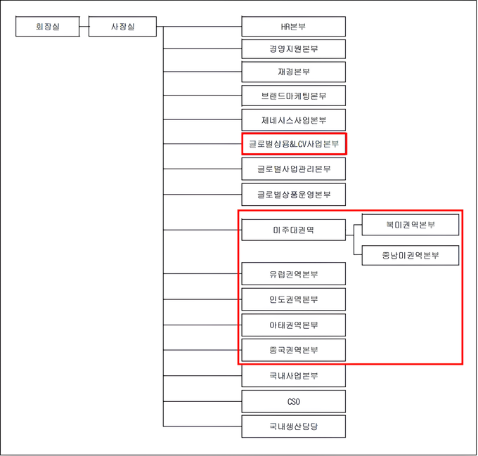 [FETV=이신형 기자] 최근 공개된 현대자동차 조직도에서 글로벌 권역 체계 개편이 이뤄진 모습이 확인됐다. 기존 COO 중심의 권역 관리 구조를 정리하고 사장실 직속 체계로 재편하면서 글로벌 시장 변화에 대한 대응 속도를 높이려는 움직임이 나타났다는 분석이다.
