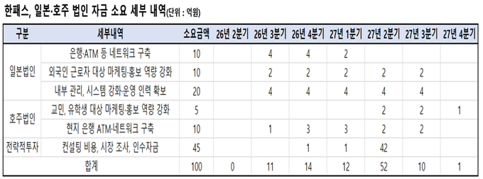 일본 법인에는 내년까지 약 40억원을 투입해 IT 인프라 구축과 앱 개발, 컴플라이언스 체계 정비 등 사업 기반을 강화할 계획이다. 현지 은행 및 ATM 사업자와의 제휴 확대와 외국인 근로자 대상 마케팅을 통해 이용자 기반 확대에도 나선다.