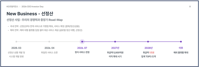 한편 이번 사업은 KG모빌리언스가 결제 중심 구조에서 금융 서비스 중심으로 사업 포트폴리오를 확대하기 위한 핵심 전략 중 하나다. 회사는 향후 결제·정산·금융 기능을 결합한 플랫폼 기반 금융 서비스로 사업 영역을 확장해 나갈 방침이다.