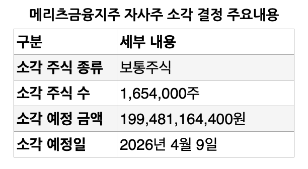 소각 예정 금액은 1994억8116만4400원이며 소각 예정일은 4월 9일이다. 이번 자사주 소각은 배당가능이익을 재원으로 취득한 주식을 소각하는 방식으로 진행되며 자본금의 감소는 발생하지 않는다.
