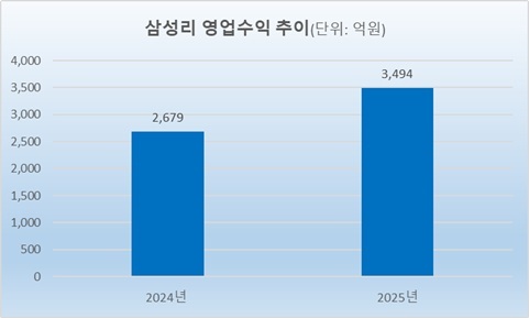 30일 삼성화재가 공시한 ‘2025년 사업보고서’에 따르면 삼성리의 지난해 영업수익은 3494억원으로 전년 2679억원에 비해 815억원(30.4%) 증가했다.