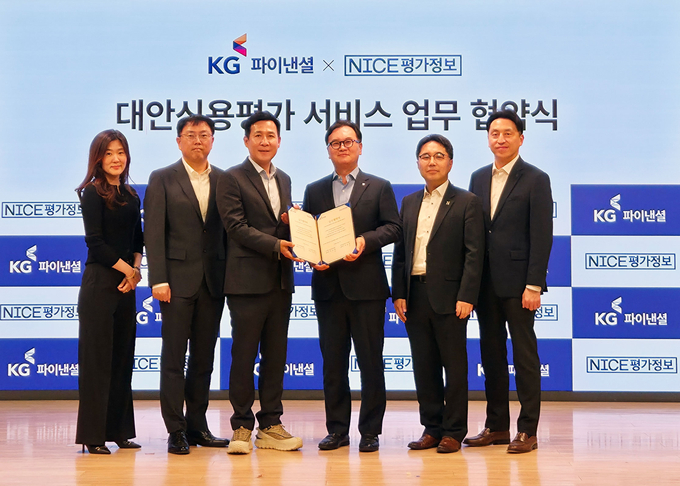 KG파이낸셜은 NICE평가정보와 지급결제 데이터 기반 대안신용평가 서비스 개발을 위한 업무협약을 체결했다. 양사는 각사가 보유한 데이터와 기술 역량을 결합해 기존 금융 이력 중심의 신용평가 체계를 보완하고 정교한 평가 모델을 구축할 계획이다.