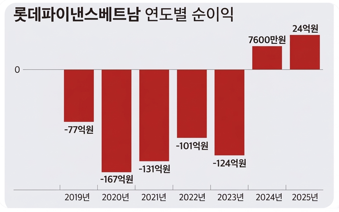 이익 창출 기반이 마련되며 재무 체력도 개선되는 모습이다. 롯데파이낸스 베트남은 2024년 첫 흑자전환(6700만원)에 성공한 이후 지난해 말 기준 순이익 24억원을 기록했다. 초기 시스템 구축에 투입됐던 비용이 점차 감소하며 수익성도 개선되는 흐름이다.