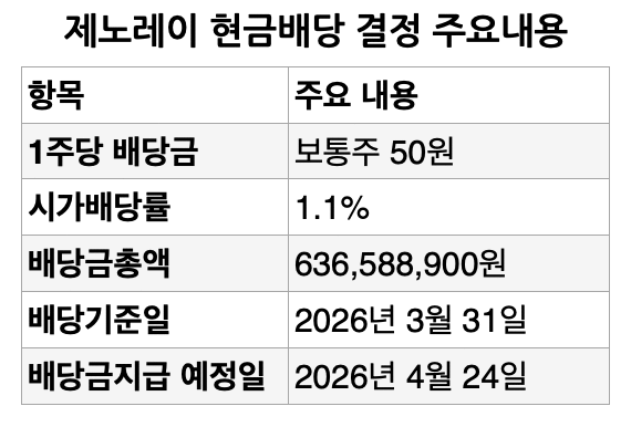 [FETV=심수진 기자] 제노레이가 1일 주당 50원의 현금을 배당하기로 결정했다고 밝혔다. 시가배당률은 1.1%이며 배당금총액은 6억3658만8900원이다. 배당기준일은 지난달 31일이며 배당금은 이달 24일에 지급될 예정이다.