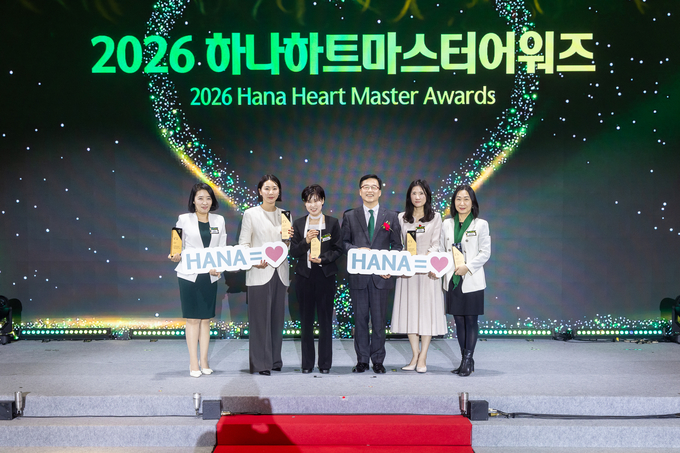 [FETV=장기영 기자] 하나손해보험은 지난 2일 인천 영종도 파라다이스시티에서 ‘2026 하나 하트마스터 어워즈’를 개최했다. 배성완 하나손보 사장은 이날 설계매니저와 영업, 보상 등 분야별 우수 직원 93명에게 상을 수여했다. 배 사장(오른쪽 세 번째)이 수상자들과 함께 기념촬영을 하고 있다. [사진 하나손해보험]
