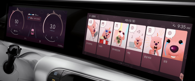 디스플레이 테마를 적용하면 시동을 걸고 끌 때의 애니메이션, 계기판, 내비게이션 등 인포테인먼트 시스템 곳곳에 캐릭터가 등장한다.