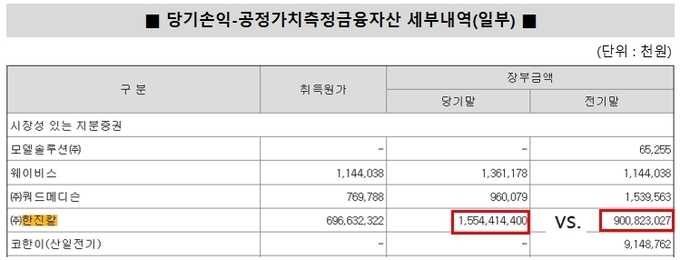 이 같은 ‘이익과 본업의 괴리’는 투자자산에서 비롯됐다. 호반건설이 보유한 한진칼 지분 가치가 크게 상승하면서 장부금액이 약 6000억원 증가했고 이를 반영한 금융수익(당기손익-공정가치측정금융자산평가이익) 확대로 순이익이 커졌다. 그간 ‘단순 투자’라는 입장을 유지해온 한진칼 지분 투자 성과가 재무지표로 확인된 셈이다.