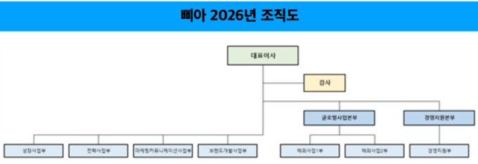 공시에 따르면 2025년 조직도에서는 대표이사 직속으로 ▲전략사업부 ▲마케팅커뮤니케이션사업부 ▲신사업부 ▲글로벌사업본부 ▲신성장사업본부 ▲경영지원본부가 배치된 구조였다. 이 가운데 신성장사업본부 산하에 신사업부가 포함돼 신규 사업 기능이 별도 축으로 운영됐다.