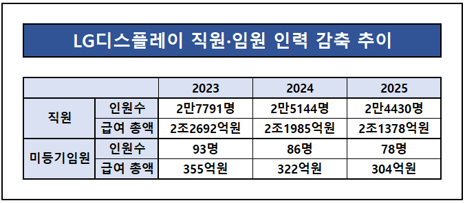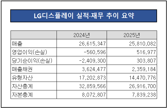 결국 LG디스플레이는 중국발 공급과잉으로 악화된 기존 LCD 중심 구조에서 벗어나기 위해 자산, 인력, 종속기업을 동시에 조정하는 방식으로 대응해왔다. 지난해의 경우 이러한 구조 재편이 재무제표와 실적으로 연결되기 시작한 시점이라는 점에서 그 의미가 크다.