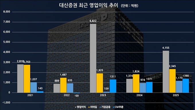 실제 실적 흐름도 이런 전략과 맞물린다. 대신증권 CM부문 영업이익은 2021년 143억원에서 2022년 -59억원으로 주춤했지만, 2023년 1311억원, 2024년 1071억원, 2025년 1390억원으로 늘었다. 5년 전과 비교하면 872.0% 증가한 수준이다. 특히 2023년에는 CM부문 실적 개선이 전체 영업이익 증가에도 힘을 보탰다.