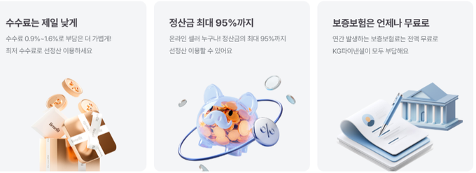 업계에서도 정산 예정 금액의 최대 90~95% 수준까지 선지급하는 구조가 일반화된 가운데 KG파이낸셜은 수수료 경쟁력을 앞세워 차별화에 나섰다. 일부 선정산 사업자가 약 30~60일 기준 1.2~2%(부가세 별도) 수준의 수수료를 적용하는 것과 비교하면 0.9~1.6%는 업계 최저 수준으로 평가된다.