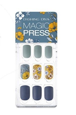 데싱디바의 메이크어무드 매직프레스 새틴 블라썸은 2019 FW 팬톤 컬러의 이브닝 블루와 블루 스톤 컬러를 연상시키는 다크네이비와 그레이 섞인 블루에 플라워가 프린트된 포인트 네일로 구성된 네일 팁이다. 테이프 필름을 뗀 뒤 손톱에 붙이기만 하면 블루 네일이 톤온톤으로 차분하지만 빈티지한 플라워 패턴의 포인트 네일과 조화를 이뤄 감성적인 가을 무드 네일을 연출할 수 있다.