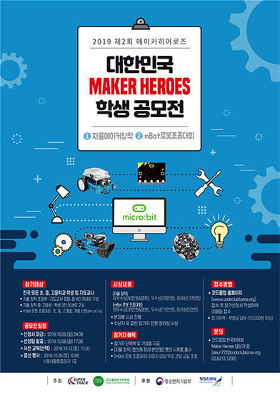 [FETV=조성호 기자] 슈퍼트랙과 코드클럽한국위원회는 전국 초‧중‧고등학생을 대상으로 ‘제2회 대한민국 메이커 히어로즈 학생 공모전’을 개최한다고 30일 밝혔다.