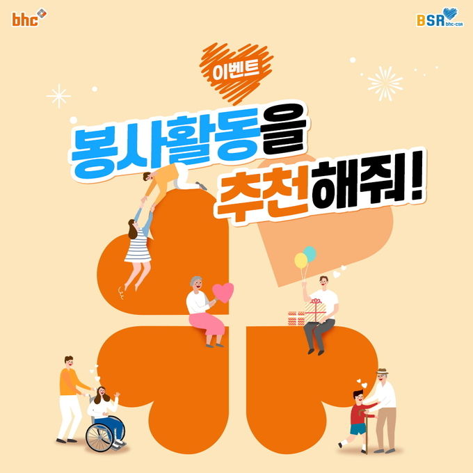 [FETV=김윤섭 기자] bhc치킨은 봄을 맞아 BSR과 함께하는 ‘봉사활동 추천’ 댓글 이벤트를 진행한다고 5일 밝혔다.