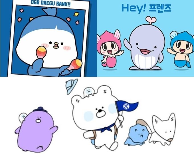 수협은행은 ‘헤이 프렌즈’가 있다. 기존 캐릭터를 리뉴얼 해 인어와 고래를 형상화한 ‘아리, 아라, 라온’은 사람과 바다의 연관관계를 의미한다. 수협은행은 해당 캐릭터를 홍보와 마케팅, 상품개발 등에 사용하는 것은 물론 직원 명함에도 고래캐릭터 ‘라온’을 활용하고 있다.