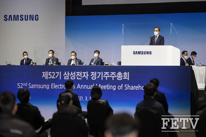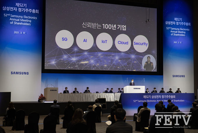 [FETV=김현호 기자] 삼성전자는 17일, 수원컨벤션센터에서 김기남, 김현석, 고동진 대표이사 및 주주 등 900여 명이 참석한 가운데 '제52기 정기 주주총회'를 개최했다. 이날 주주총회에서는 ▲재무제표 승인 ▲사내/사외이사 선임 ▲감사위원회 위원이 되는 사외이사 선임 ▲이사 보수한도 승인의 건을 상정했다.