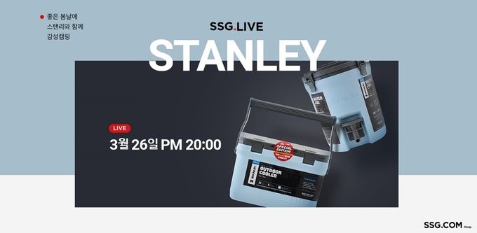 SSG닷컴은 이번 라이브방송을 통해 ‘스탠리’ 워터저그와 아이스박스, 런치박스 등 인기 캠핑 아이템을 소개한다. 방송에는 전문 쇼호스트와 코미디언 홍윤화가 출연해 시청자의 이목을 집중시킬 예정이다.