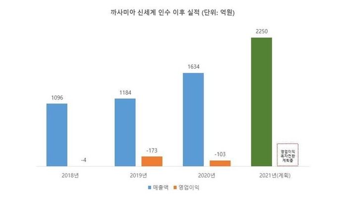 이는 코로나19 특수와 맞물려 목표했던 1600억원대 매출 초과 달성에 큰 역할을 했다. 까사미아의 지난해 매출은 1634억원으로 전년보다 약 38% 증가했으며, 적극적인 투자로 발생했던 적자 역시 70억가량 크게 개선했다.