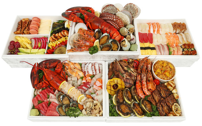 보노보노 삼성점에서 새롭게 선보인 ‘프리미엄 파티팩’은 랍스터 회와 찜, 참치 특수부위, 전복, 가리비, 초밥 등 고급 해산물로 만든 메뉴를 비롯해 양갈비, LA갈비, 계절과일, 디저트 등을 5가지 플래터에 담아 구성한 것이 특징이다. 가격은 39만9000원.