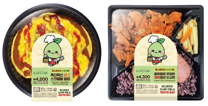 이마트24가 판매하는 모코코 도시락 2종은 기존 판매상품(푸짐한 제육정찬, 에그스크램블) 패키지에 로스트아크 캐릭터 모코코를 디자인하고 아이템 쿠폰을 넣은 협업 상품이다.