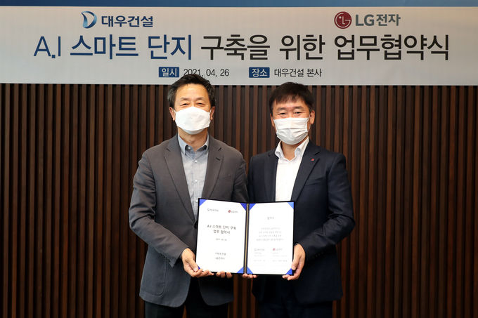 [FETV=김현호 기자] 대우건설이 27일, LG전자와 미래 A.I 스마트 단지 구축을 위한 업무협약(MOU)을 26일 체결했다고 밝혔다. 이번 협약을 통해 대우건설은 자체 개발한 스마트 푸르지오 플랫폼에 LG전자의 ThinQ 플랫폼을 연동하여 미래 주거문화를 선도하는 스마트홈 플랫폼을 구현한다는 계획이다.