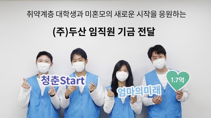 이 기부금은 ㈜두산 임직원들이 지난 한 해 동안 모금한 것으로 임직원 기금위원회에서 선정된 사회공헌 사업 ‘청춘Start!’와 ‘엄마의 미래’에 사용된다.