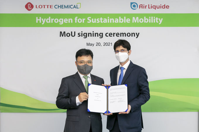 기욤 코테 에어리퀴드코리아 대표는 "한국의 지속 가능한 모빌리티 수소 사업 육성을 위해 롯데케미칼과 함께 이번 업무협약을 맺게 되어 매우 기쁘게 생각한다”며 “이번 제휴는 에어리퀴드의 기술을 바탕으로 롯데케미칼의 부생 수소를 활용한 상업용 트럭들을 친환경 수소 연료전지 트럭으로 전환하겠다는 의지를 담고 있다. 양사간의 상호보완적 강점을 적극 활용하는 것으로 이번 프로젝트는 보다 지속 가능한 미래 발전에 기여하기 위한 에어리퀴드와 롯데케미칼의 ESG 전략에도 잘 부합한다”고 말했다.