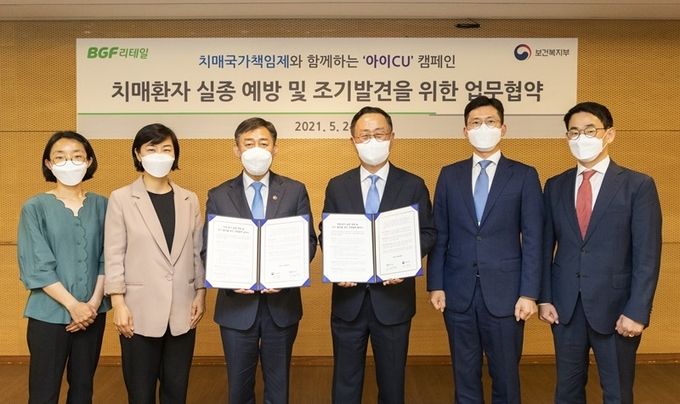[FETV=김윤섭 기자] BGF리테일은 24일 강남구에 위치한 BGF 사옥에서 BGF리테일 이건준 사장, 보건복지부 양성일 제1차관 등 관계자가 참석한 가운데 ‘치매환자 실종예방 및 조기발견을 위한 공동협력 협약’을 체결했다고 25일 밝혔다.