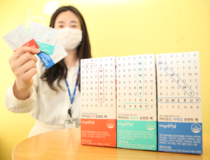 ‘마이코드 모먼트 팩’은 3종 라인업에 따라 각각 영양의 고른 균형, 활력충전, 여성 갱년기 건강에 도움을 줄 수 있는 제품이다. 소비자는 라이프 스타일에 맞는 라인업을 선택하여 하루 1팩을 1번 섭취하면 된다. 서로 다른 기능성을 담은 제품을 조제약 형태로 단위 포장하여 복용편의성을 높였다.