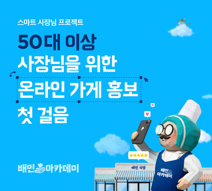 배민을 운영하는 우아한형제들은 50대 이상의 시니어 사장님을 위한 디지털 집중 교육 '스마트 사장님 프로젝트'를 시작한다고 16일 밝혔다.