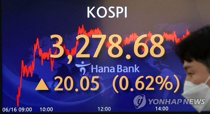 16일 코스피는 전장보다 20.05포인트(+0.62%) 오른 3278.68에 거래를 종료했다. 이날 코스피 지수는 전장 대비 0.43포인트(+0.01%) 상승한 3259.06에서 출발해 장중 한때 3281.96까지 치솟기도 했다. 이는 지난 1월 11일 기록한 장중 최고치(3266.23)를 5개월 만에 돌파한 것이다. 개인이 2832억원을 순매도했고 외국인이 2331억, 기관이 444억원을 각각 순매수했다.
