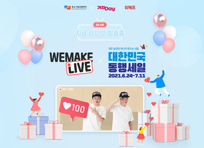 ‘WE MAKE LIVE’는 위메프가 소상공인 온라인 판로 개척을 위해 진행 중인 라이브커머스 프로젝트다. 오늘부터 진행되는 ‘대한민국 동행세일’에 특별 라이브방송 형식으로 참여해 소상공인 매출 증대에 나선다.