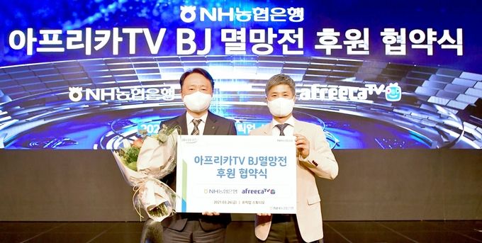 농협은행은 지난 3월 아프리카TV와 'BJ멸망전 시즌1' 후원 협약을 맺었다. 'BJ멸망전'은 아프리카TV의 인기 게임 BJ(1인 미디어 진행자)들이 참여하는 아프리카TV의 대표적인 캐주얼 e스포츠 리그다. 후원 협약식에는 권준학 농협은행장이 직접 모습을 드러내 협약 체결에 대한 의지를 드러냈다. 권 행장은 이 자리에서 "e스포츠 후원을 통해 MZ세대와 소통하는 계기를 마련할 것"이라고 밝혔다. 농협은행은 이번 협약 관련 ‘최종 우승팀을 맞혀라’ 등 다양한 이벤트를 마련하며 젊은 세대의 지속적인 관심을 끌어낸다는 방침이다.