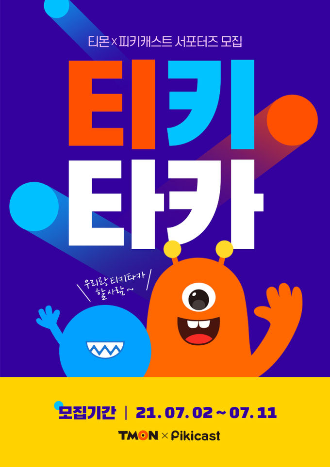 [FETV=김윤섭 기자] 티몬과 피키캐스트는 미디어커머스 콘텐츠를 다양하게 기획해볼 수 있는 서포터즈 ‘티키타카’를 오는 11일까지 모집한다고 5일 밝혔다.