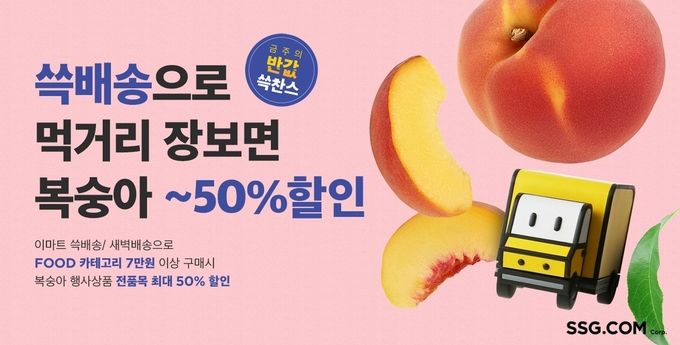 먼저 8일과 9일 양일간 ‘쓱찬스’ 행사를 진행한다. ‘쓱찬스’는 매주 목요일과 금요일 이틀간 쓱배송 혹은 새벽배송으로 식품 카테고리 상품을 7만원 이상 구매한 고객에게 신선식품을 반값에 제공하는 행사다. 이번주는 제철과일 ‘복숭아’를 50% 할인가에 구매할 수 있다.