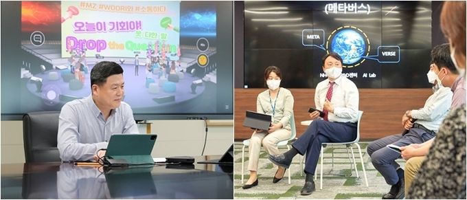 이날 메타버스 가상세계에서 진행된 행장-직원들과의 대화 가운데 가장 눈에 띄는 것은 'MZ 너의 생각이 궁금해', 'MZ가 우리은행에 바란다' 순서였다. 통상 자신보다 직급·연차 등이 낮은 직원들의 생각이나 바라는 점 등을 묻고 공유하는 모습을 보기 쉽지 않다는 점에서 새로운 이벤트라는 평가다.