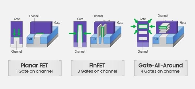 핀펫의 차세대 기술로 평가되는 GAA는 3면에 아랫면까지 더해 총 4면으로 이뤄진다. 4면에는 채널을 제어하는 게이트가 둘러싸 전류의 흐름을 보다 세밀하게 제어할 수 있다. 업계에서는 GAA를 적용하면 핀펫 방식보다 면적을 35% 이상 줄여 소비전력을 50% 감소시키고 처리속도는 30% 가량 향상될 것으로 보고 있다. 이에 따라 반도체 미세공정의 ‘게임 체인저’로 평가되고 있는 상황이다.