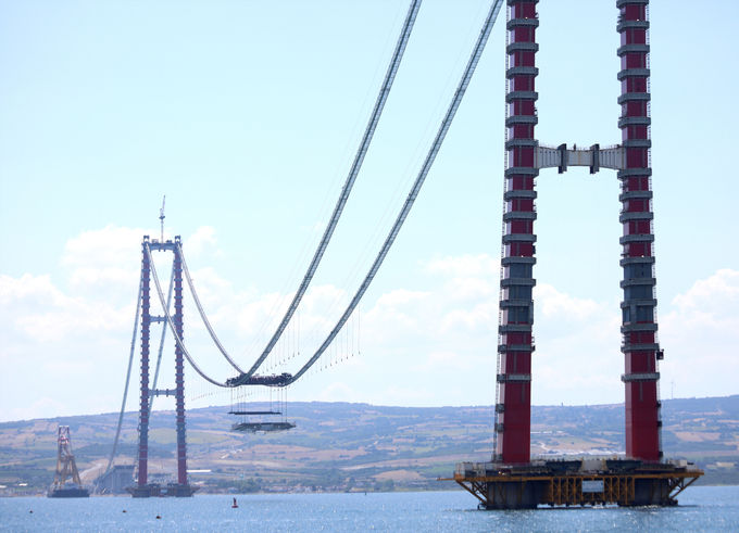 상판 제작에 사용된 강판은 포스코에서 공급했다. 에펠탑을 7개 만들 수 있는 무게인 총 5만톤에 달하는 강판을 터키로 운반해 현지에서 제작했다. 모든 상판의 설치가 완료되면 총 길이 3.6km에 달하는 세계에서 가장 긴 현수교의 외관이 사실상 완성된다.