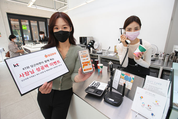 KT는 참여하는 모든 소상공인에게 당근마켓 지역광고 캐시 5만원 쿠폰을 제공하는 ‘사장님 성공팩 이벤트’를 2일부터 10월 31일까지 진행한다고 밝혔다. 이 이벤트는 KT홈페이지 내 ‘진행중인 이벤트’ 페이지에서 참여할 수 있다.